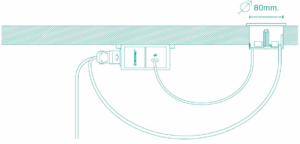 - The 80mm circular cut-out is hidden by the product when installed.